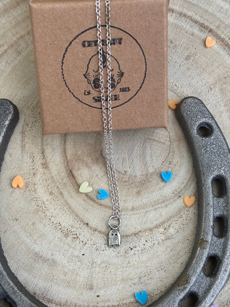 check out these super cute casted ghosties on a 20 inch sterling rolo chain! Halloween is all year round, a little nod to the best time of the year!