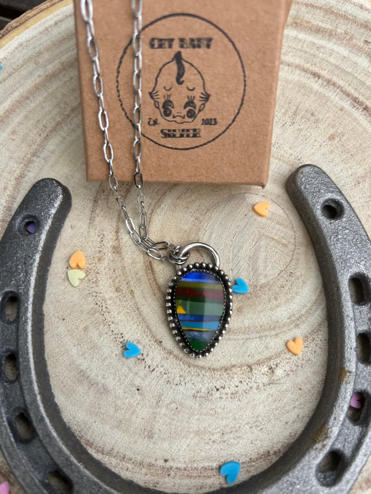 Surfite is quickly becoming one of my favourite materials to work with. When I received these cabs I wasn’t sure I liked them, but after setting them in silver it won me over!